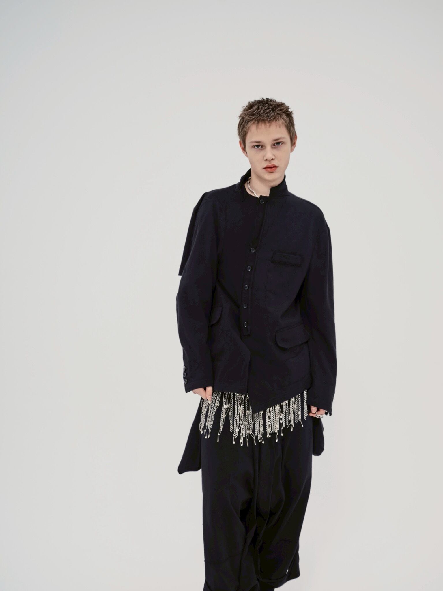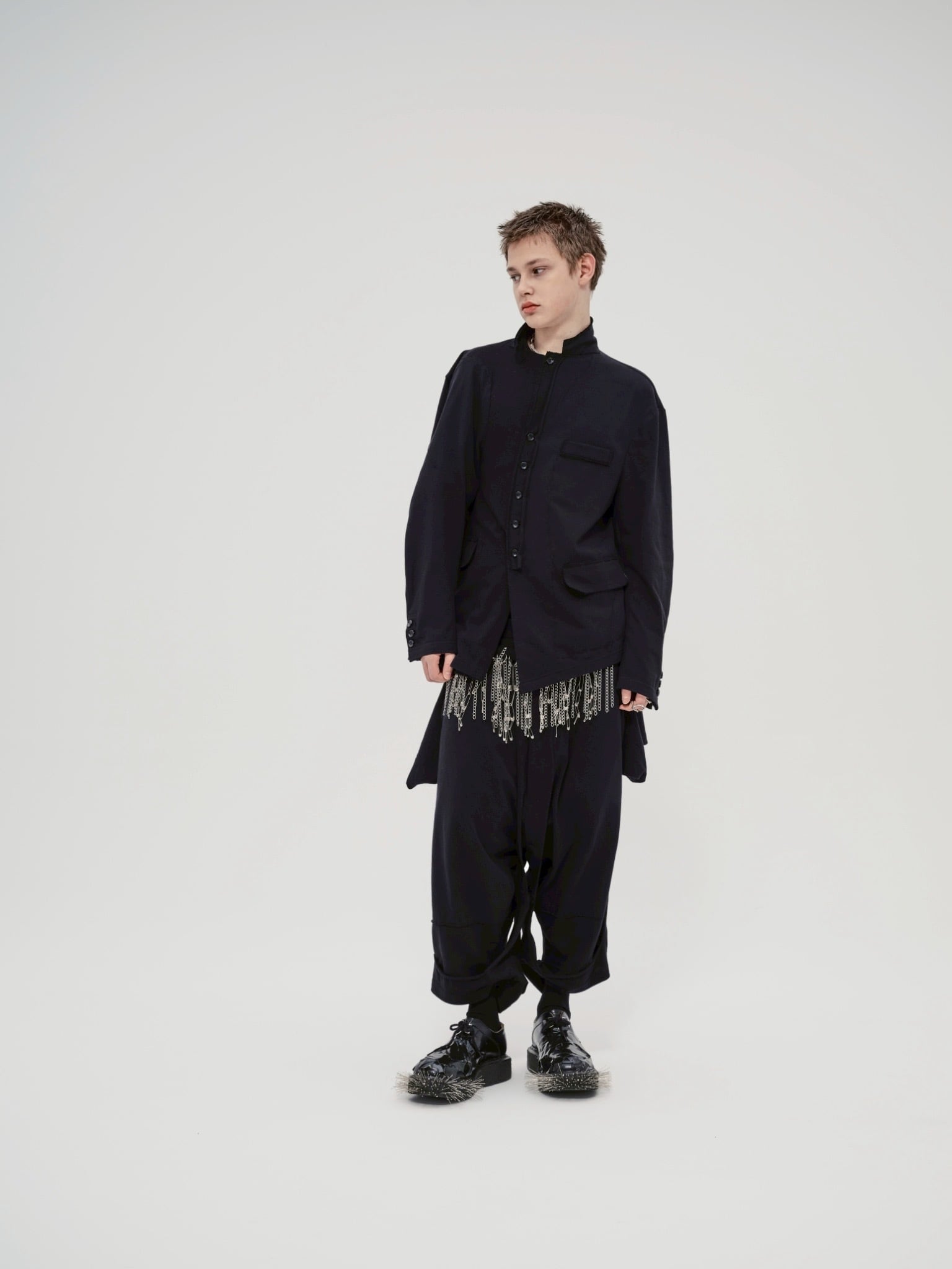 「衣服のパターンの構造、機能性を再解釈して作業的にデザインしていく」をテーマに、元COMME des GARCONS HOMME PLUSのパタンナーであった池田友彦が2025年より立ち上げたファッションブランド。ブランド名は、ドイツ語で「注釈」を意味し、「小説などで注釈を見ればその言葉の意味がわかるように、言葉で説明して理解するのではなく、服を見ればわかるような、それ自体が何かを訴えてくるような服を作りたい」との思いから名付けられた。