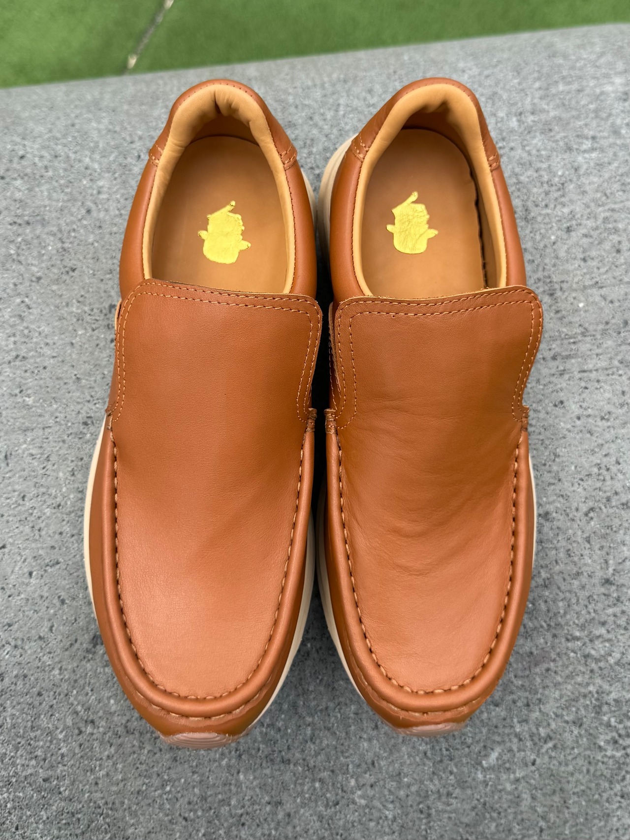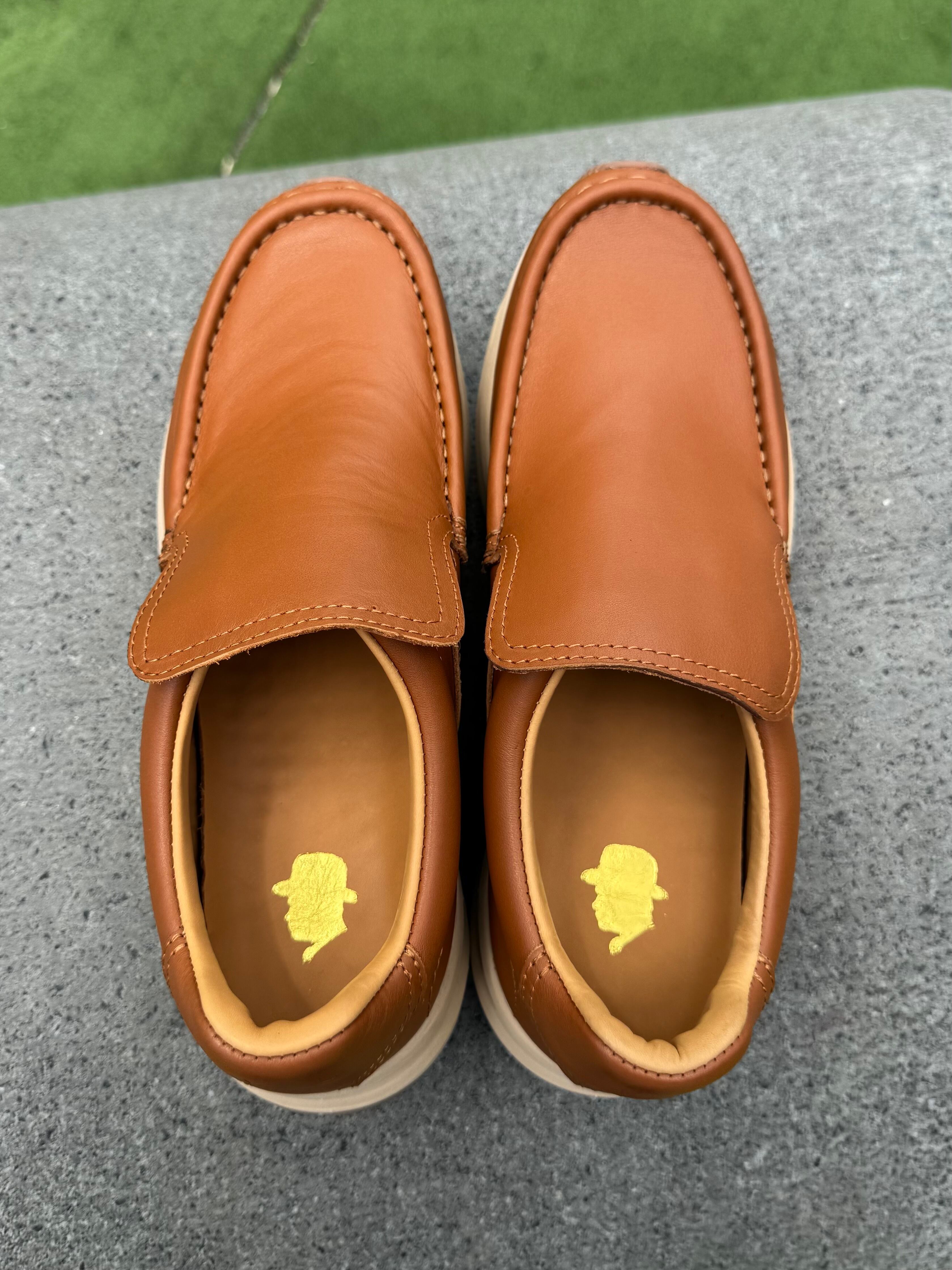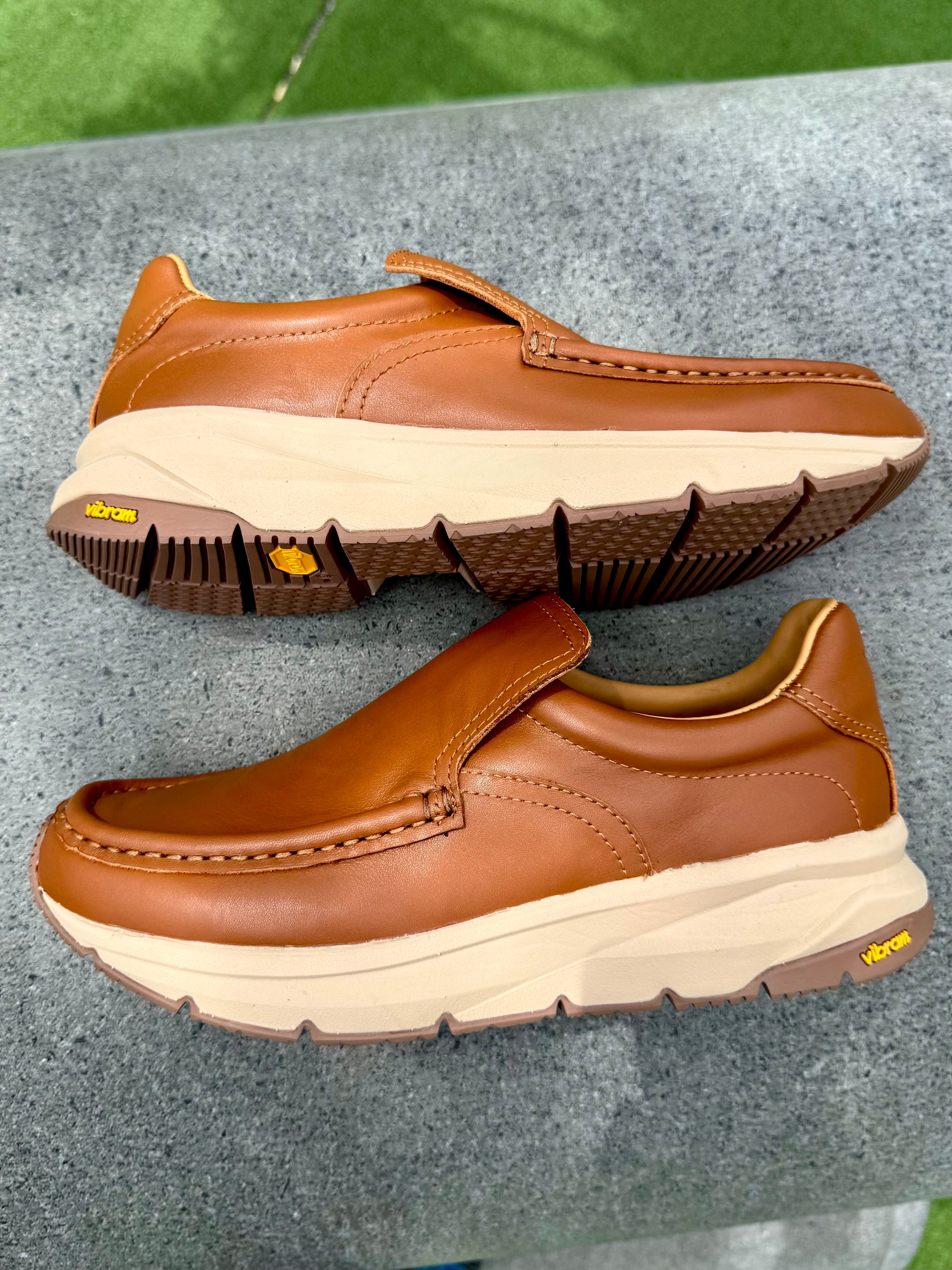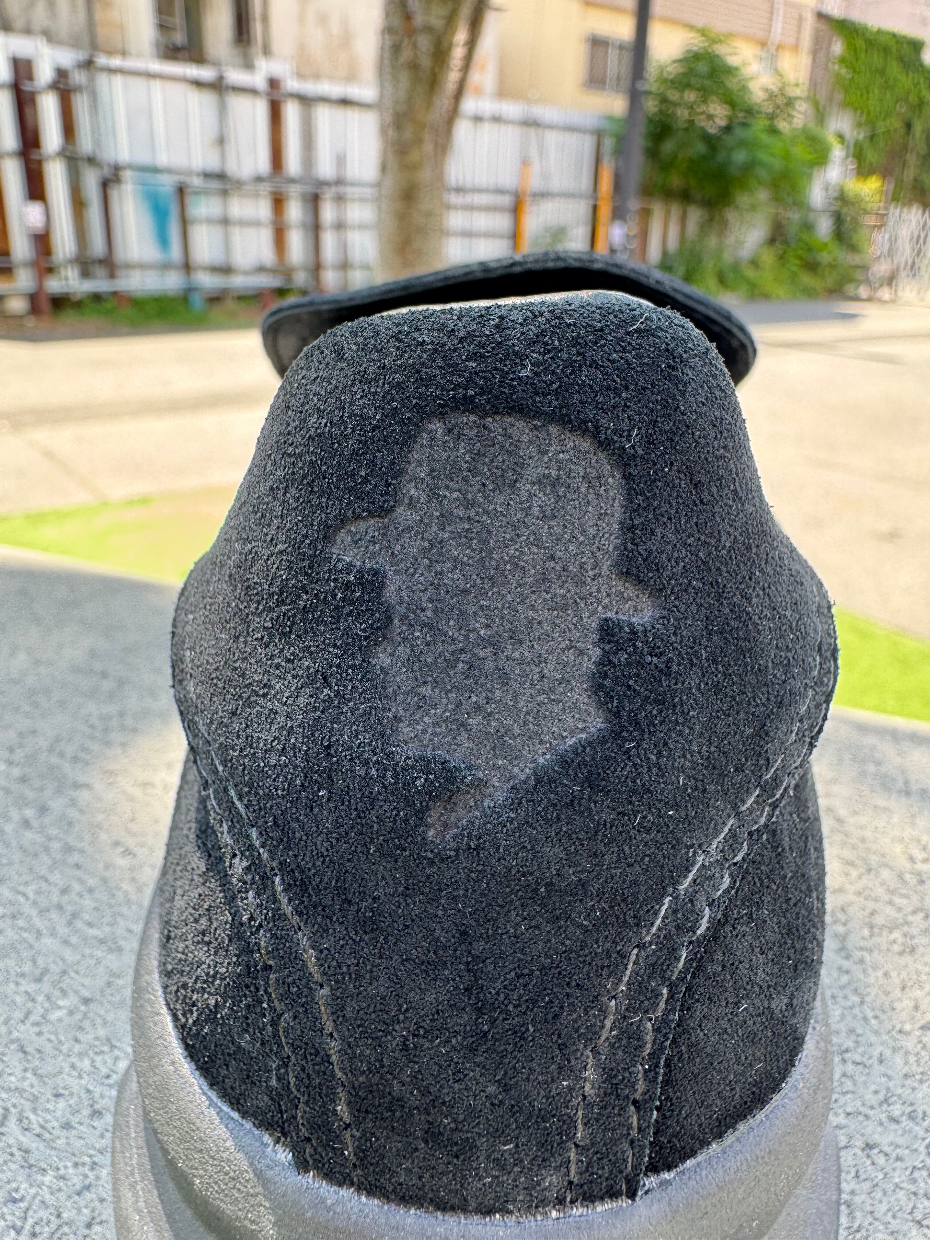 スエードレザーのアッパーに厚底のソールを組み合わせたスリッポンタイプのシューズ。