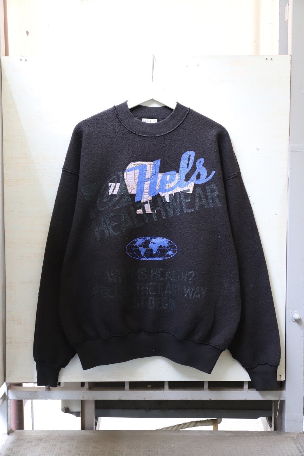年末、せっかくだったら特別感あるものをご用意したいなと、HELSに無理言って古着一点ものにグラフィックを施した